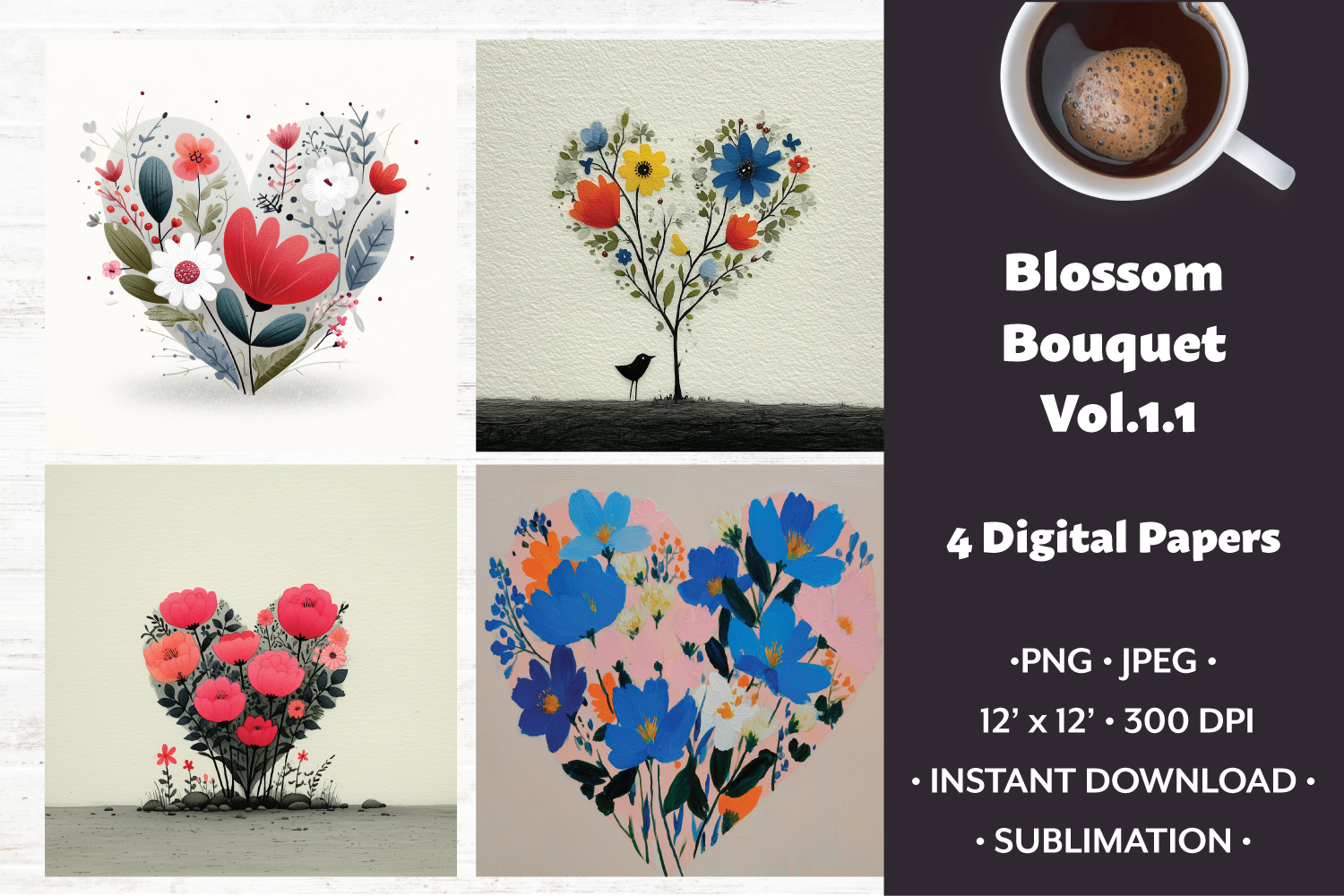 Blossom Bouquet Digital Paper Vol. 1.1, 4 PNG & JPEG