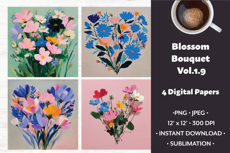 Blossom Bouquet Digital Paper Vol. 1.9, 4 PNG & JPEG