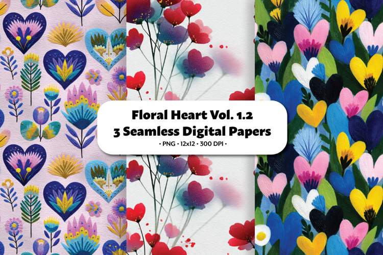 Floral Heart Seamless Digital Paper Vol.1.2, 3 PNG