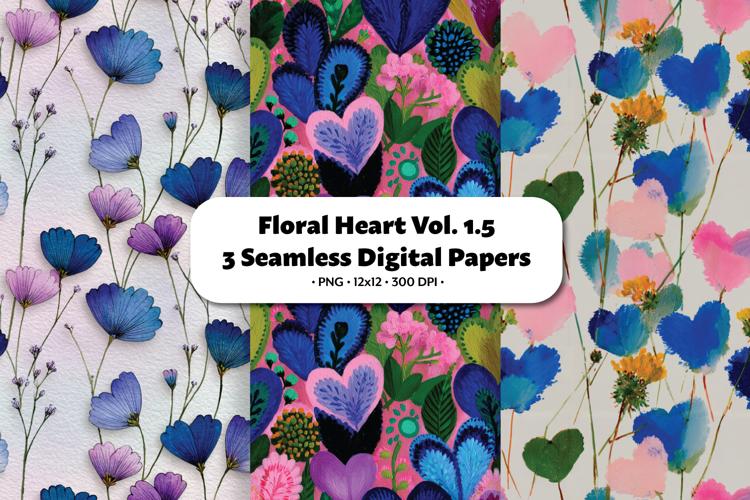 Floral Heart Seamless Digital Paper Vol.1.5, 3 PNG