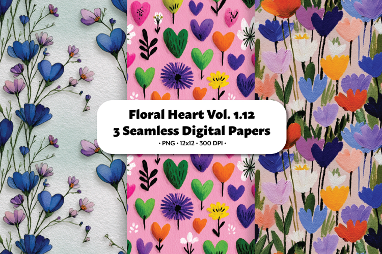 Floral Heart Seamless Digital Paper Vol.1.12, 3 PNG