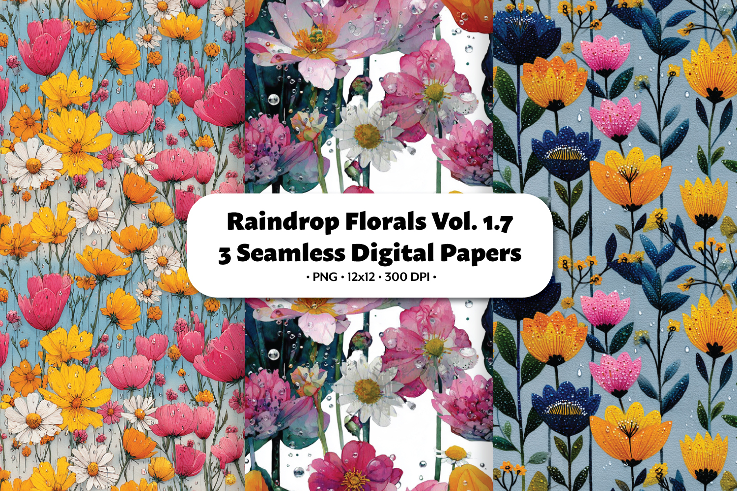 Raindrop Florals Seamless Digital Paper Vol.1.7, 3 PNG