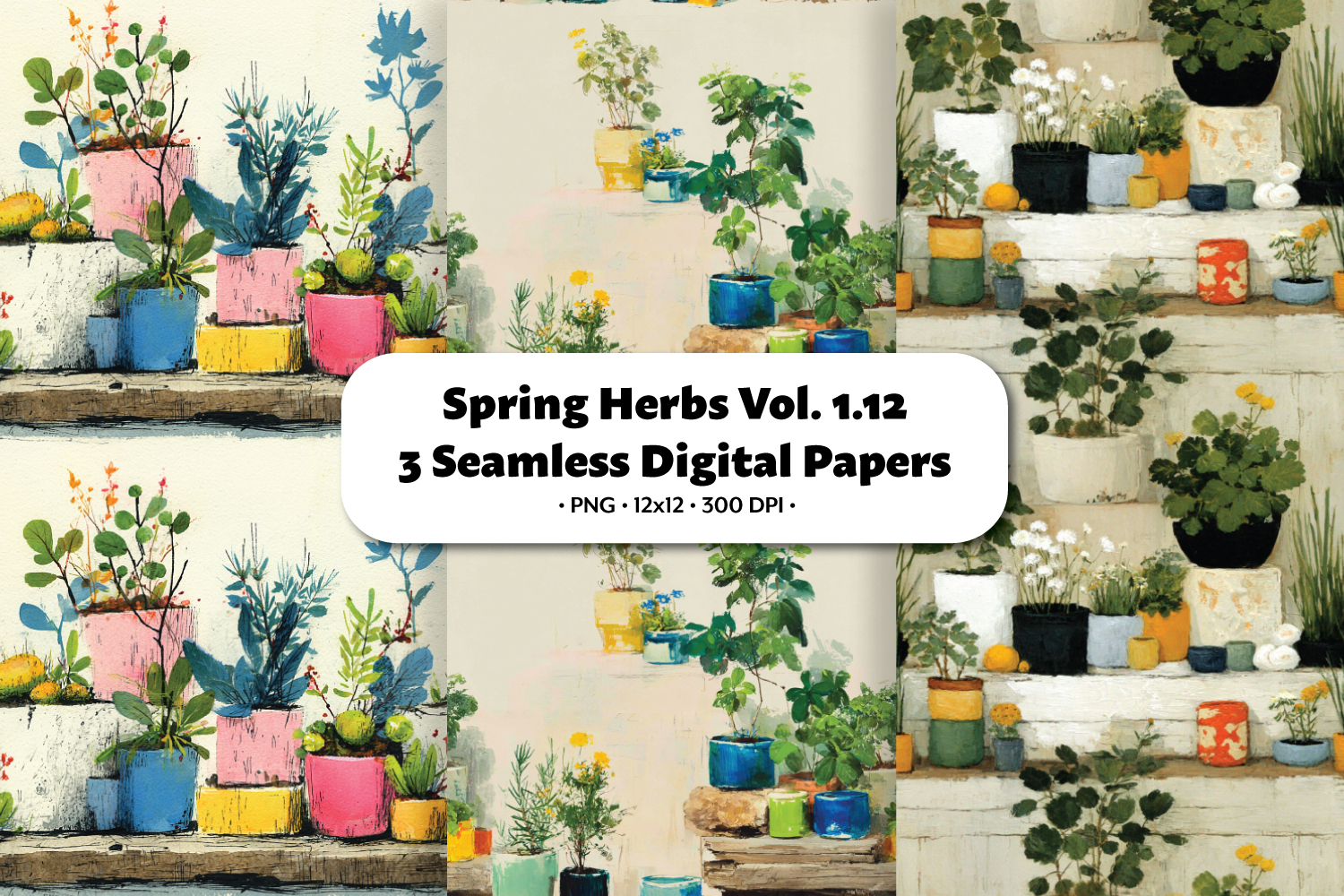 Spring Herbs Seamless Digital Paper Vol.1.12, 3 PNG