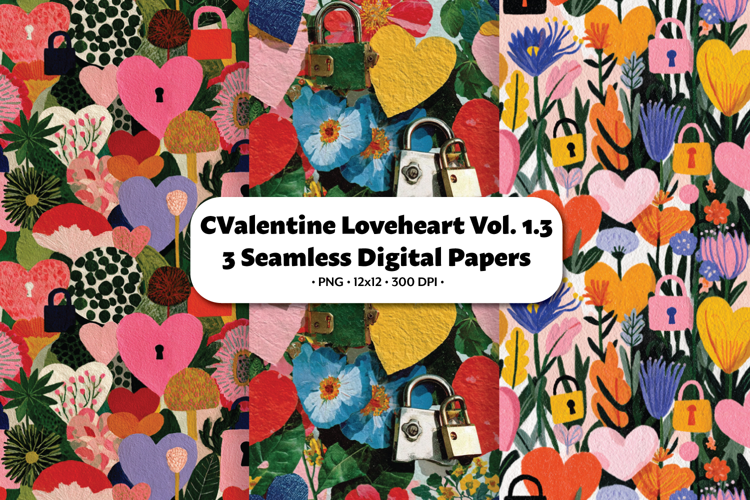 Valentine Loveheart Seamless Digital Paper Vol.1.3, 3 PNG