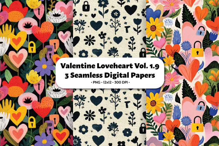Valentine Loveheart Seamless Digital Paper Vol.1.9, 3 PNG