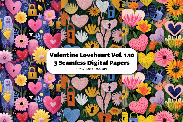 Valentine Loveheart Seamless Digital Paper Vol.1.10, 3 PNG