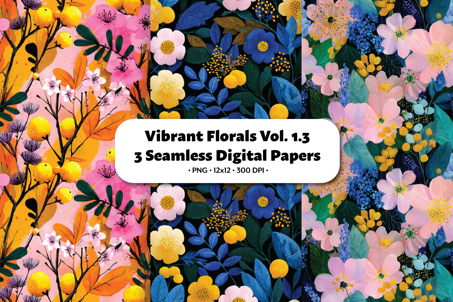 Vibrant Florals Seamless Digital Paper Vol.1.3, 3 PNG