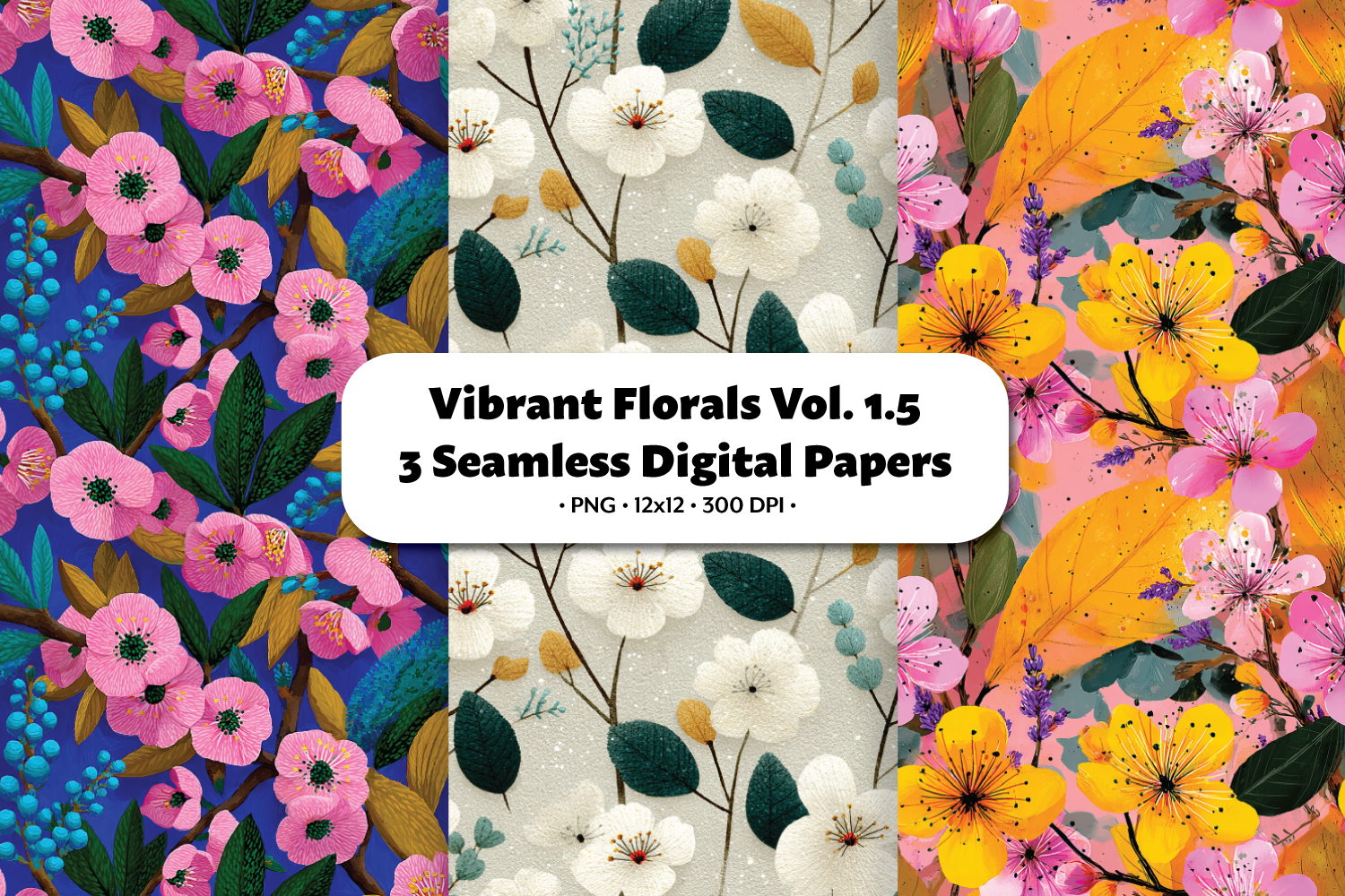 Vibrant Florals Seamless Digital Paper Vol.1.5, 3 PNG