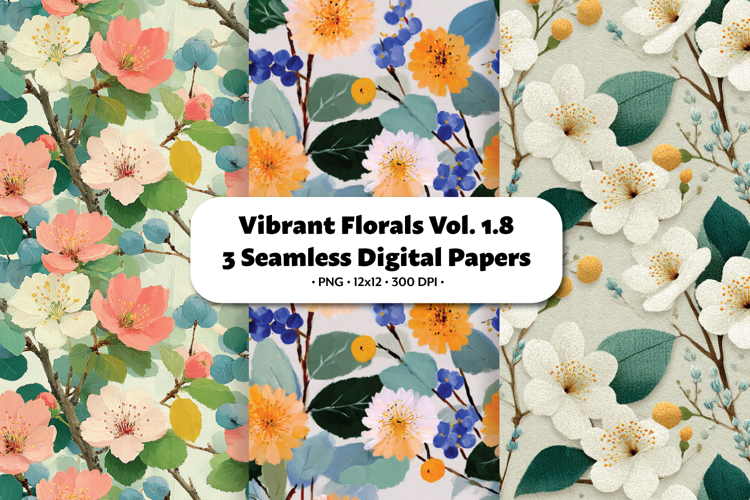 Vibrant Florals Seamless Digital Paper Vol.1.8, 3 PNG