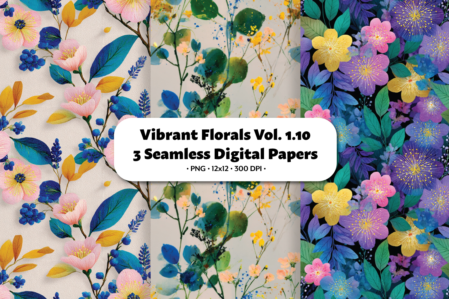 Vibrant Florals Seamless Digital Paper Vol.1.10, 3 PNG