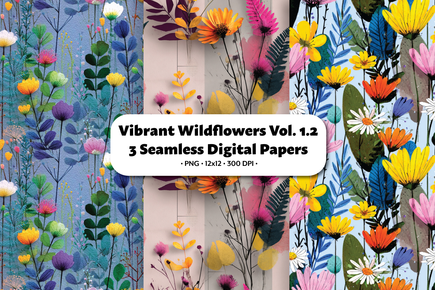 Vibrant Wildflowers Seamless Digital Paper Vol.1.2, 3 PNG