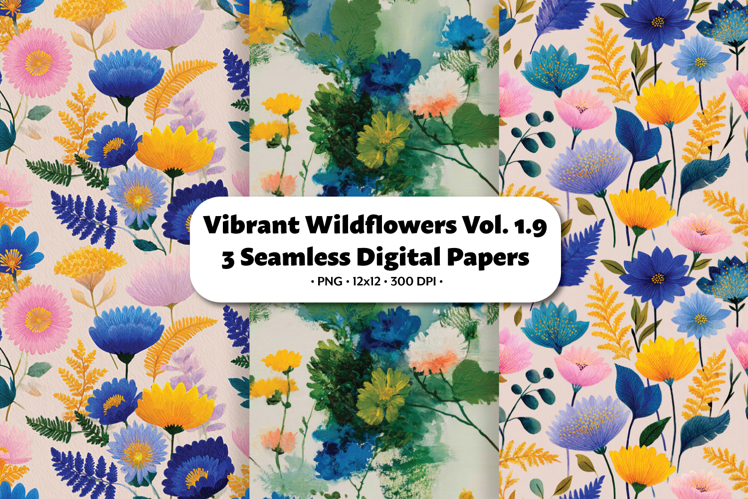 Vibrant Wildflowers Seamless Digital Paper Vol.1.9, 3 PNG