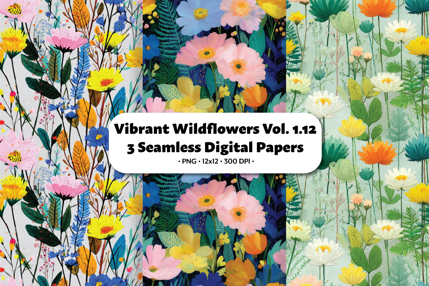 Vibrant Wildflowers Seamless Digital Paper Vol.1.12, 3 PNG