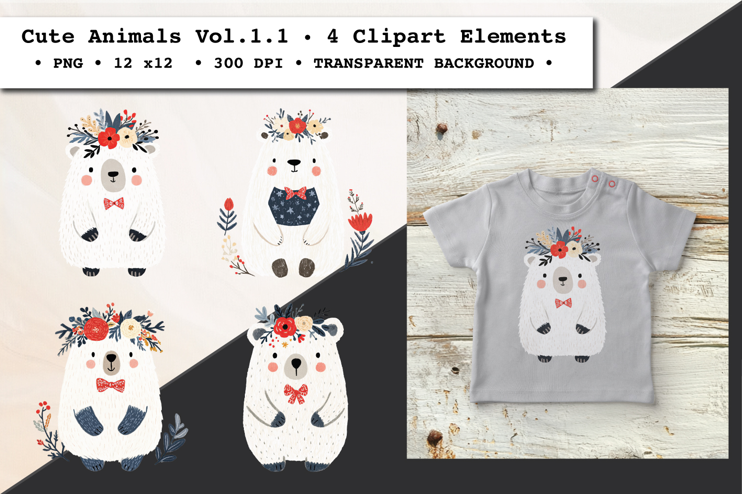 Similar Design Products to Cute Animals Clipart Vol. 1.1, 4 PNG Elements