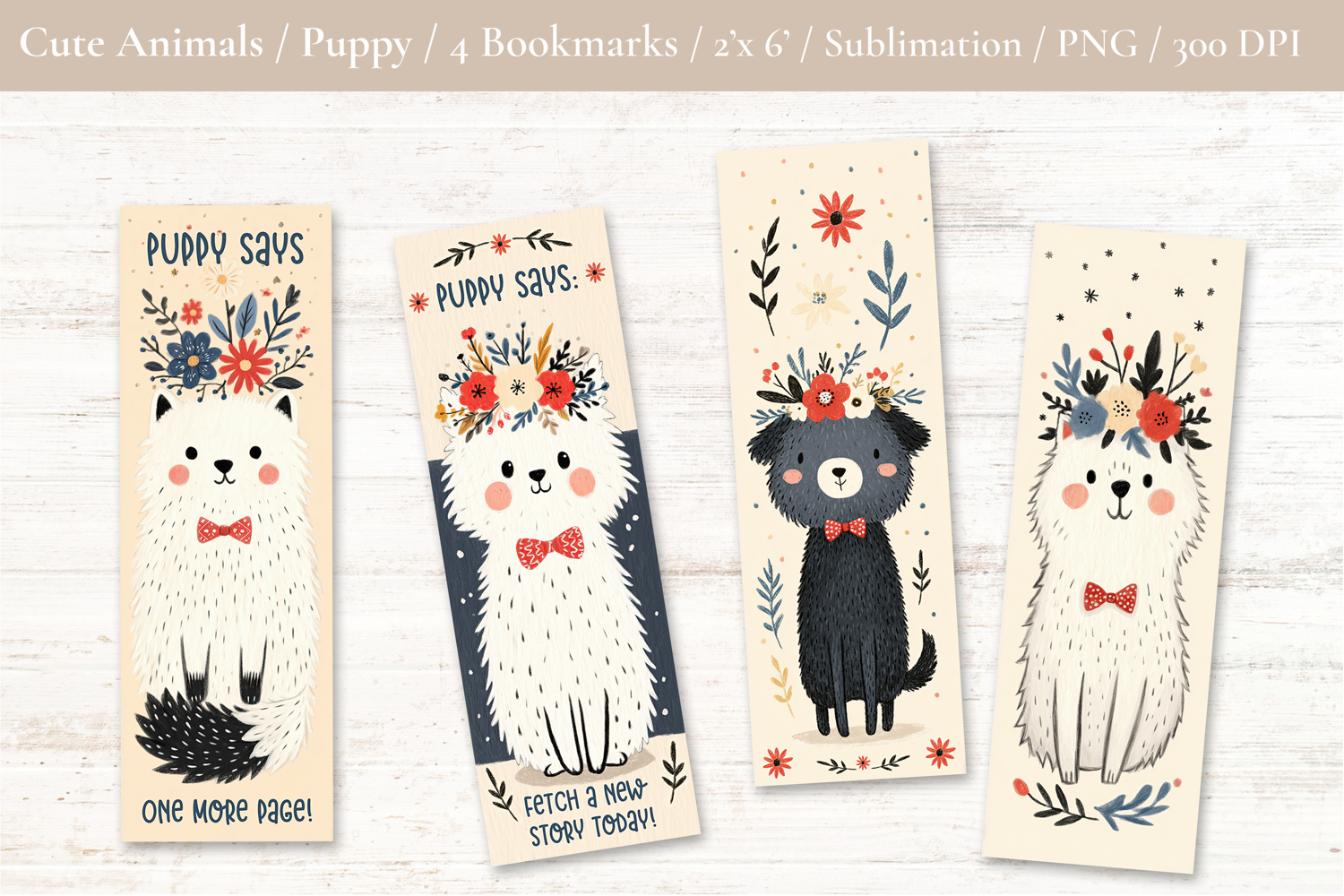 Cute Puppy Bookmark - Printable Crafts, 4 PNG