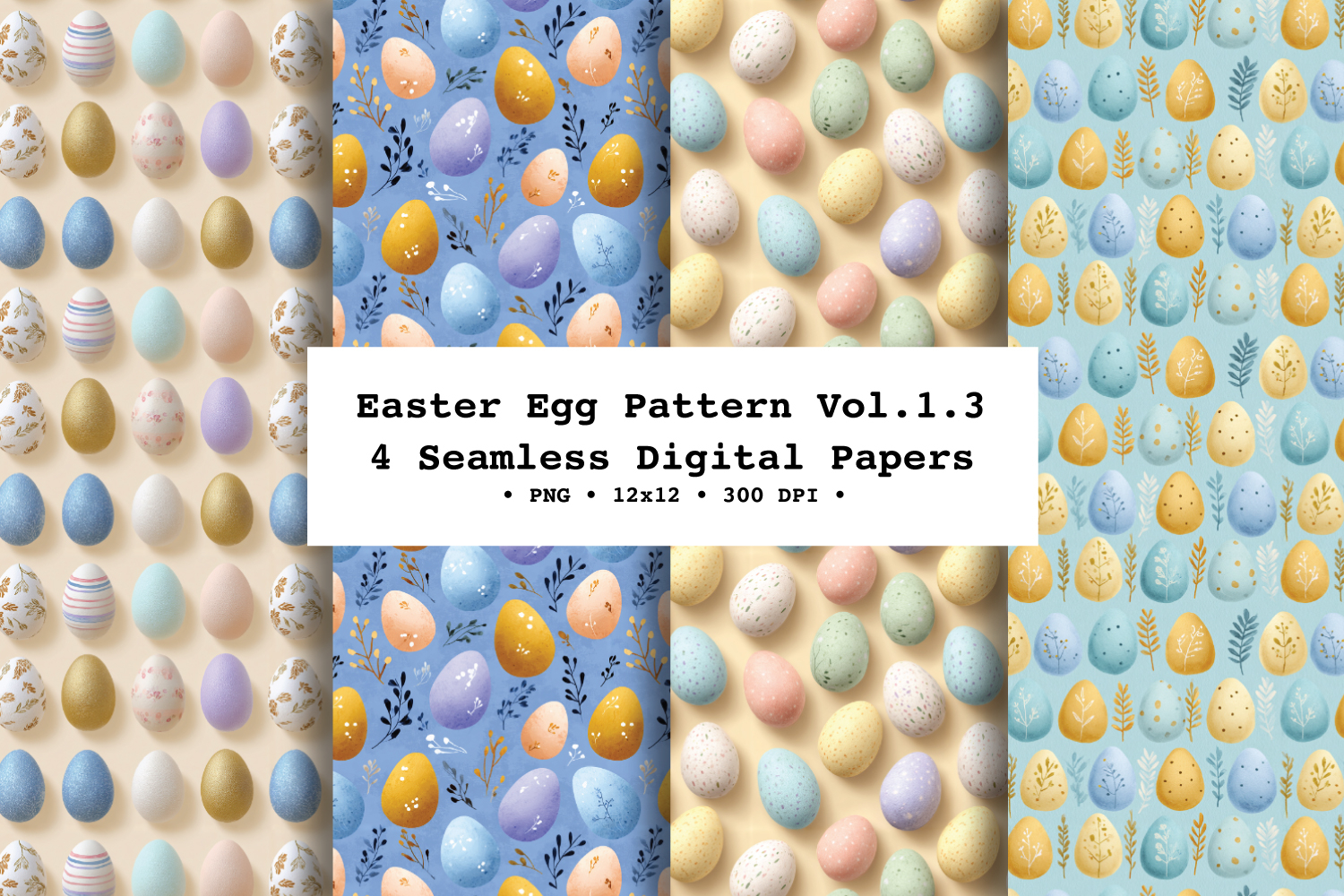 Create sweet spring and Easter projects with this Easter Egg seamless digital patterns ! This collection includes 4 coordinating repeat patterns featuring pastel Easter eggs with a mix of speckles, tiny patterns, and soft shading—plus touches of metallic gold-style eggs for an elegant, modern look.