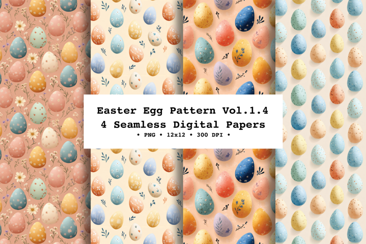 Create sweet spring and Easter projects with this Easter Egg seamless digital patterns ! This collection includes 4 coordinating repeat patterns featuring pastel Easter eggs with a mix of speckles, tiny patterns, and soft shading—plus touches of metallic gold-style eggs for an elegant, modern look.