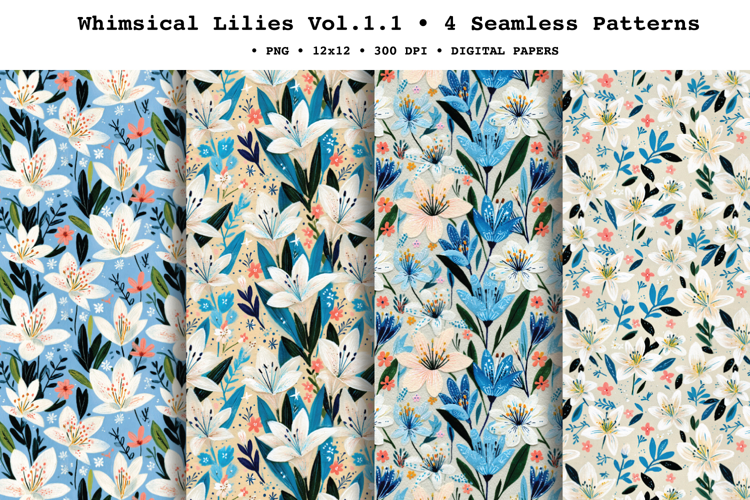Whimsical Lilies Seamless Pattern Vol.1.1 - 4 PNG