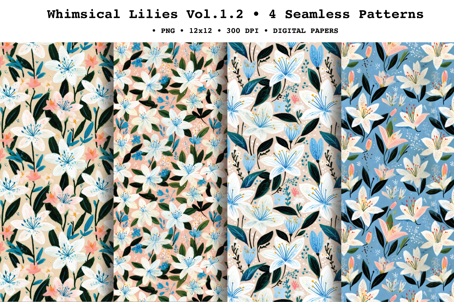 Whimsical Lilies Seamless Pattern Vol.1.2 - 4 PNG