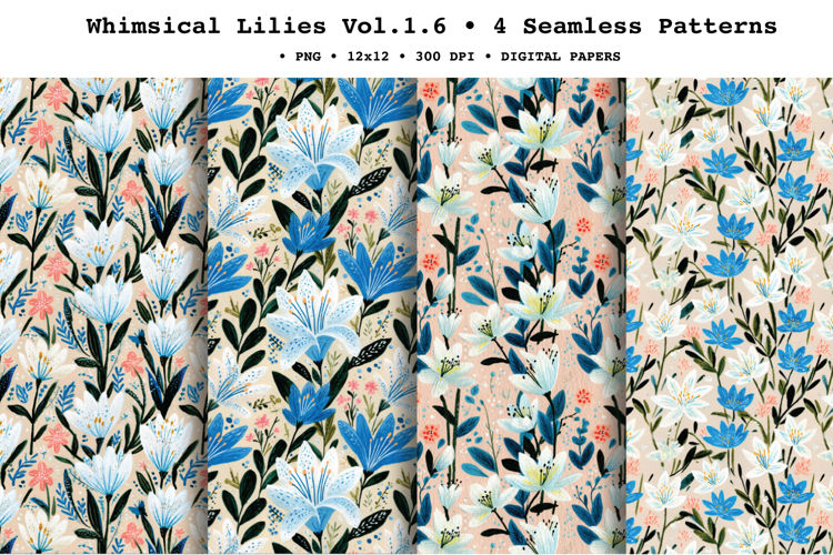Whimsical Lilies Seamless Pattern Vol.1.6 - 4 PNG