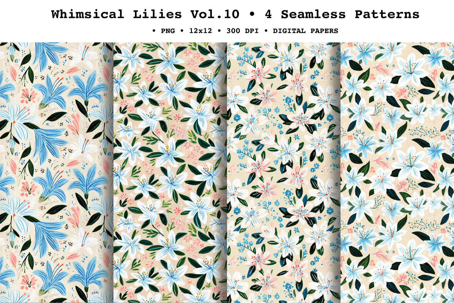 Whimsical Lilies Seamless Pattern Vol.1.10 - 4 PNG