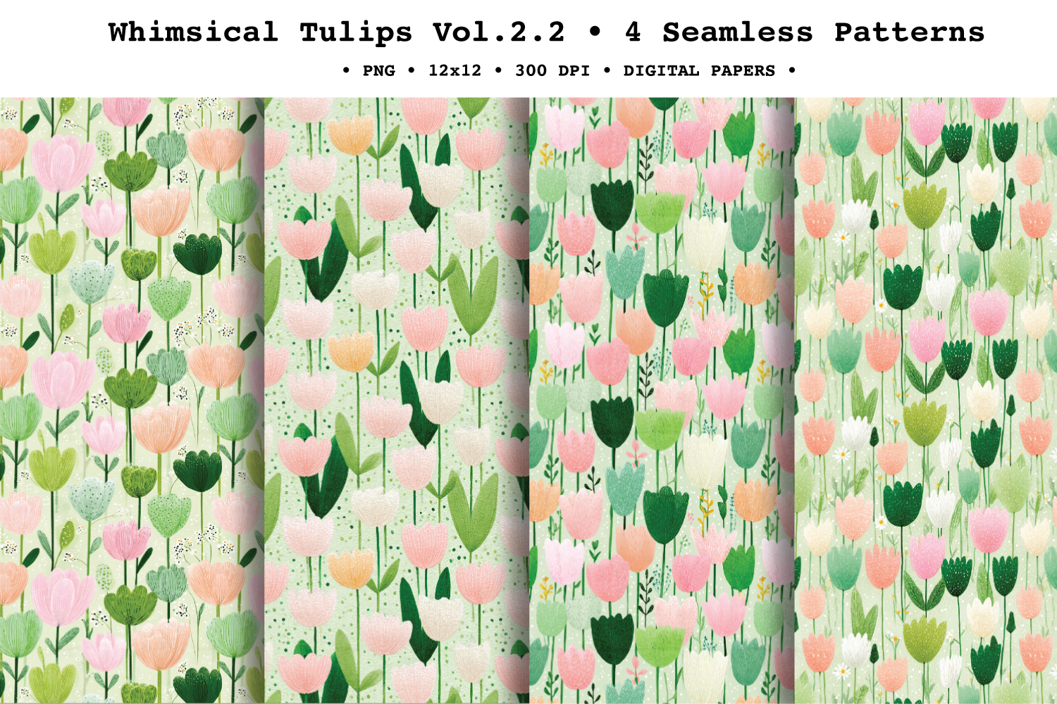 Whimsical Tulips Seamless Pattern Vol.2.2 - 4 PNG
