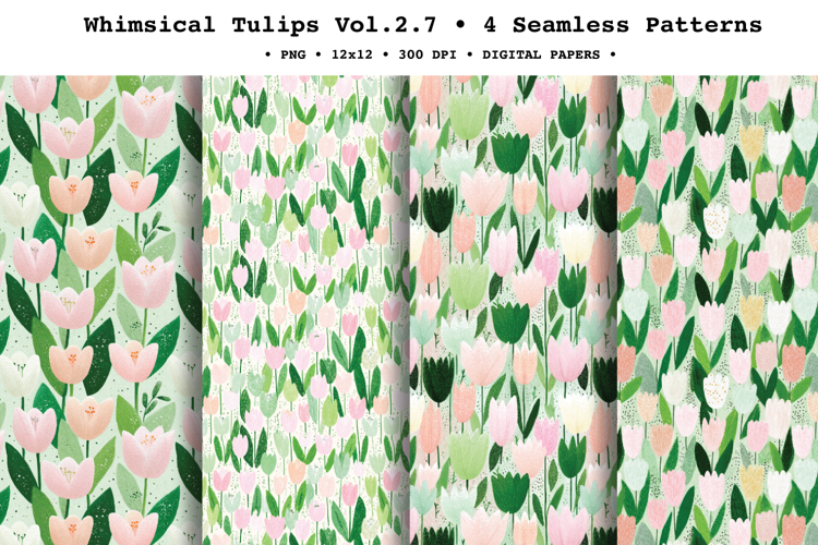 Whimsical Tulips Seamless Pattern Vol.2.7 - 4 PNG