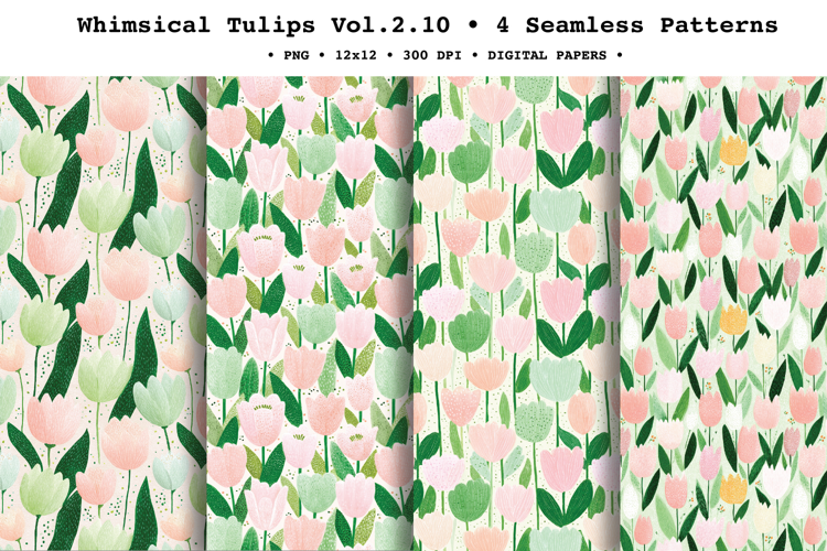 Whimsical Tulips Seamless Pattern Vol.2.10 - 4 PNG