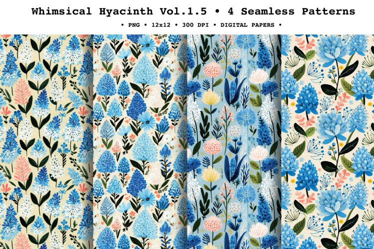 Whimsical Hyacinth Seamless Pattern Vol.1.5 - 4 PNG