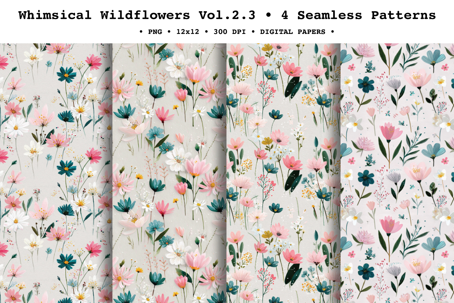 Whimsical Wildflowers Seamless Pattern Vol.2.3 - 4 PNG