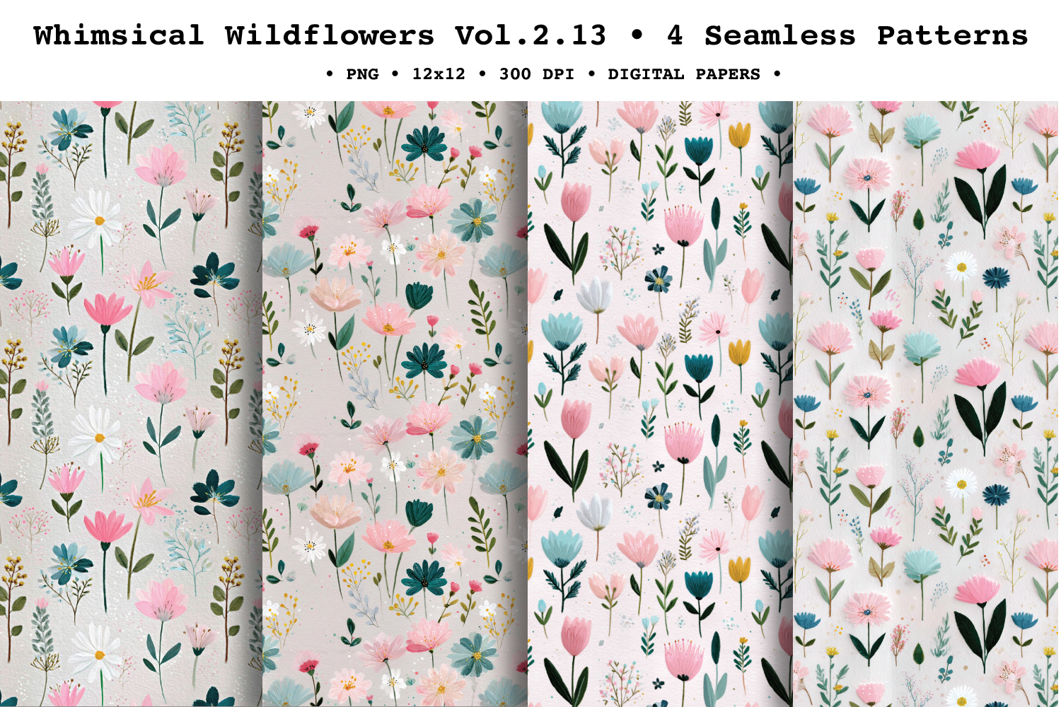 Whimsical Wildflowers Seamless Pattern Vol.2.13 - 4 PNG