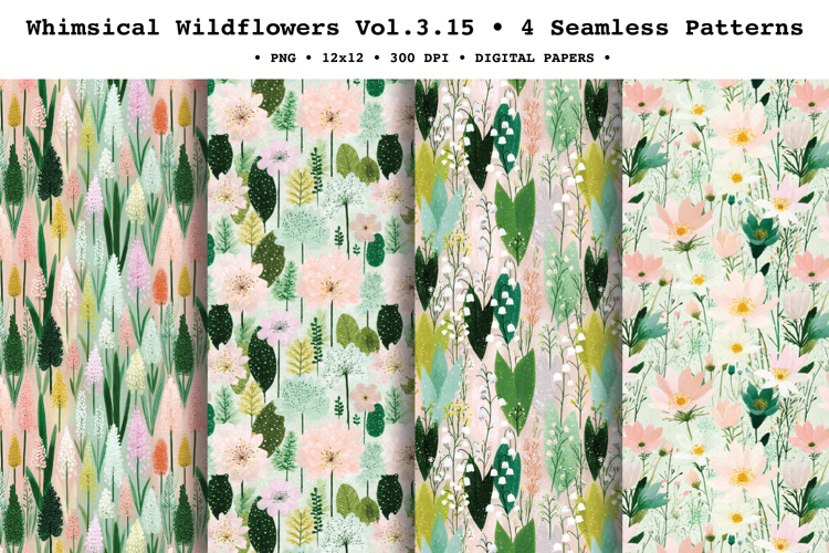 Whimsical Wildflowers Seamless Pattern Vol.3.15 - 4 PNG