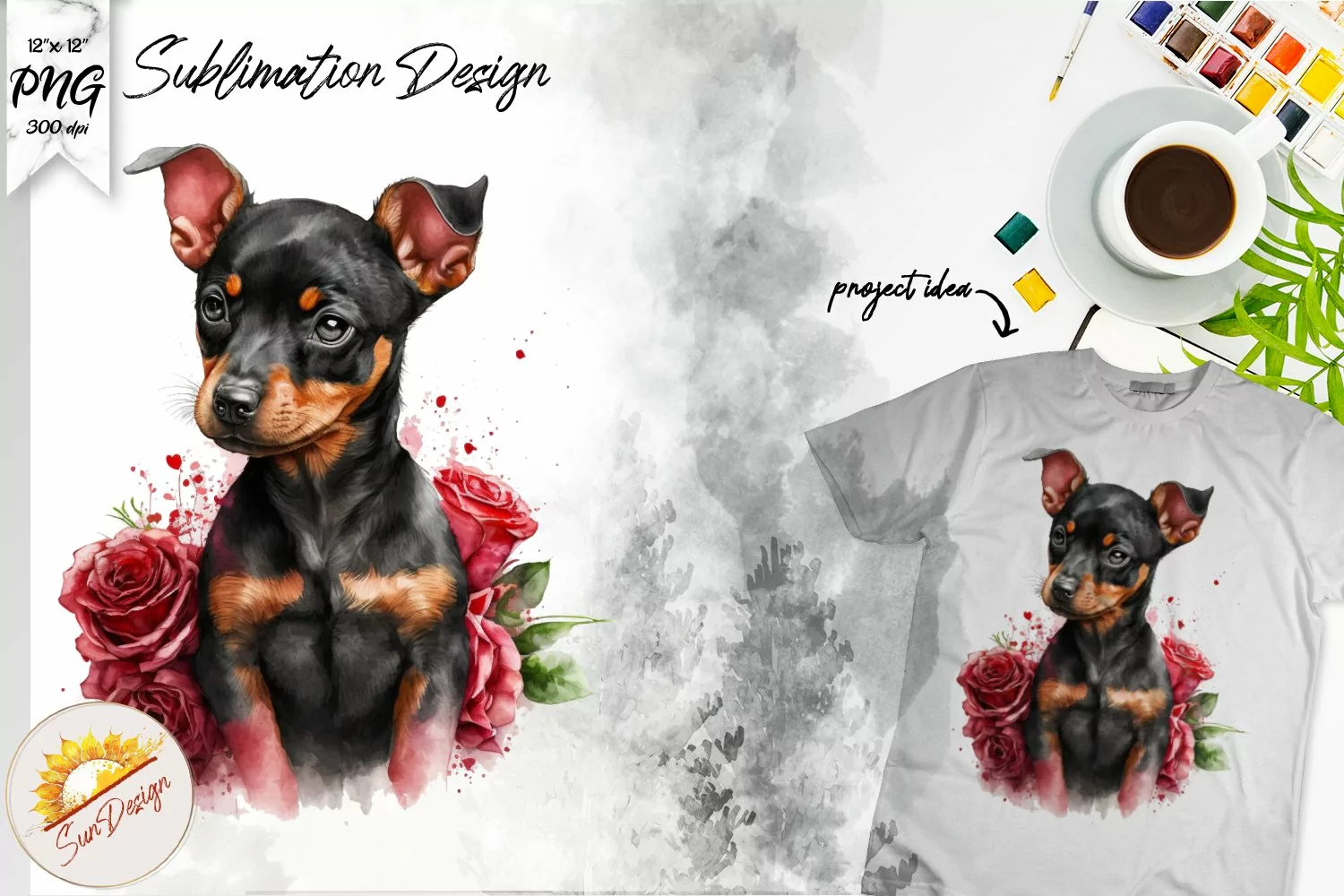 Pinscher Valentine's Day Watercolor Sublimation PNG example image 1