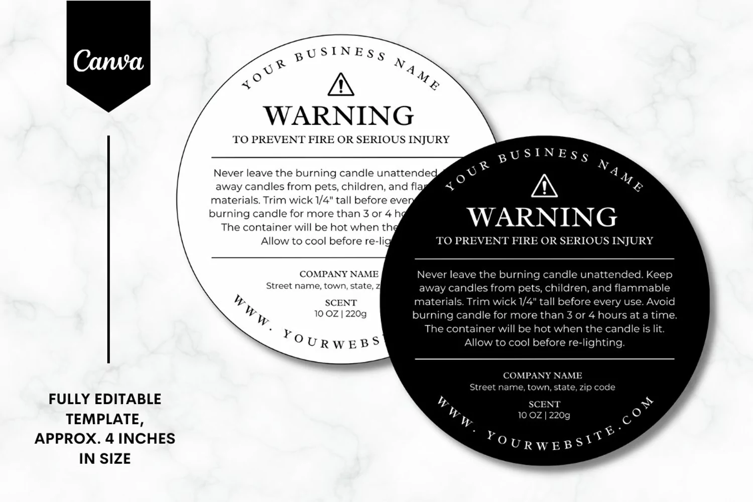 Custom Candle Warning Label Canva Template - B&W 3