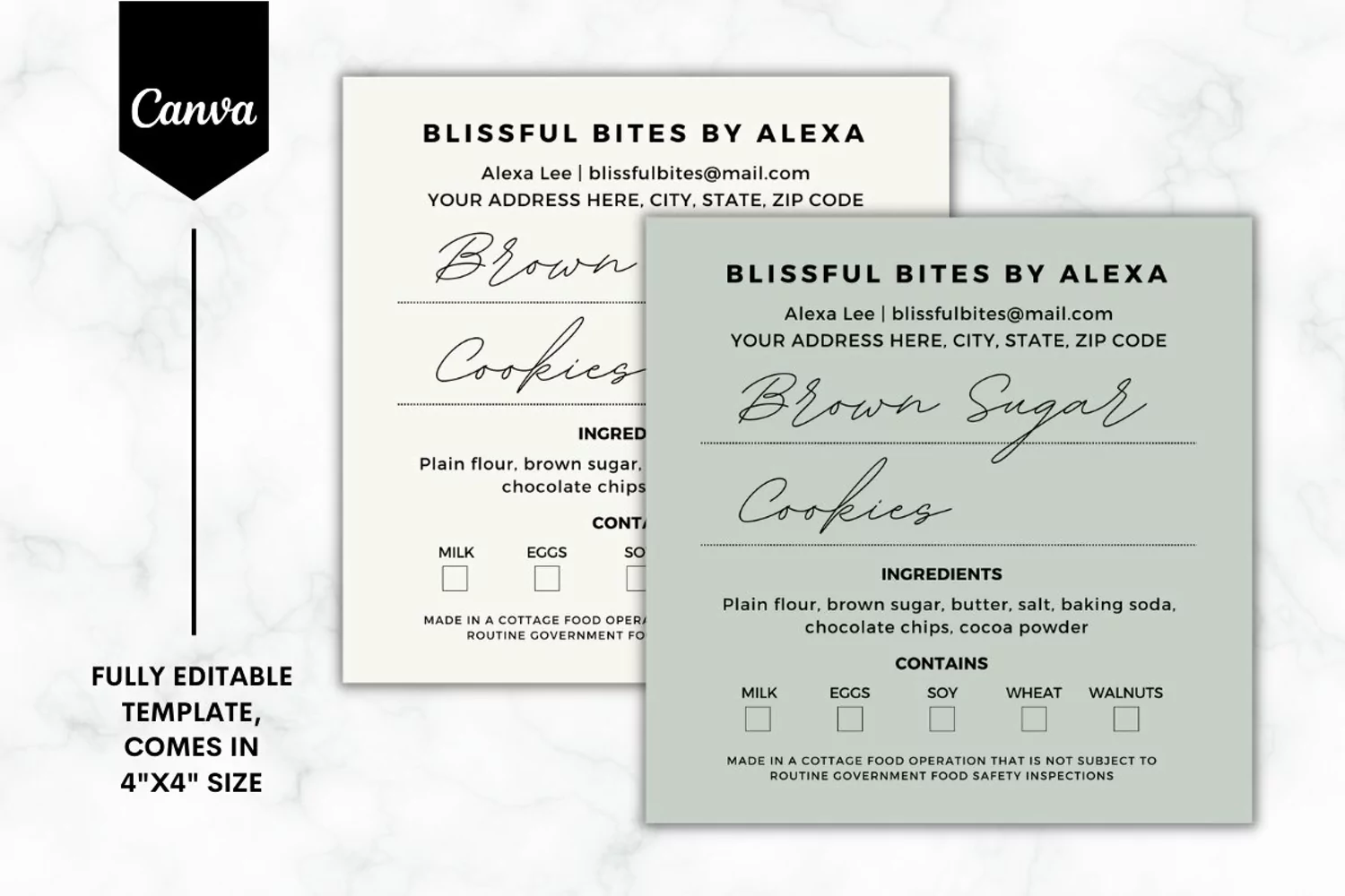 Editable Cottage Law Labels Template Food License Label For Home Bakery Product Editable Cookie Ingredient List With Allergen Lab Custom White Label Cookies Feminine Cookies Ingredients Labels Texas Cottage Law Labels Design Printable Baker Ingredients Sticker Made In A Home Kitchen Template Custom Home Bakery Stickers Cottage Food Law Label Template Canva