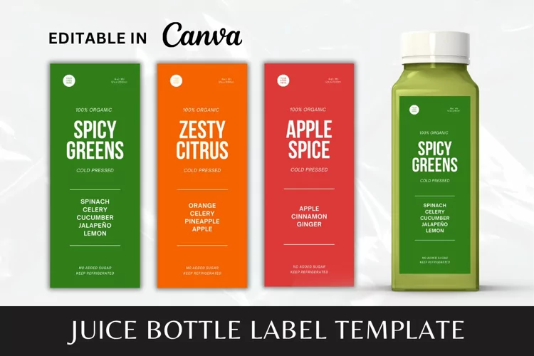 Editable Fresh Juice Bottle Label Sticker Canva Template - 1