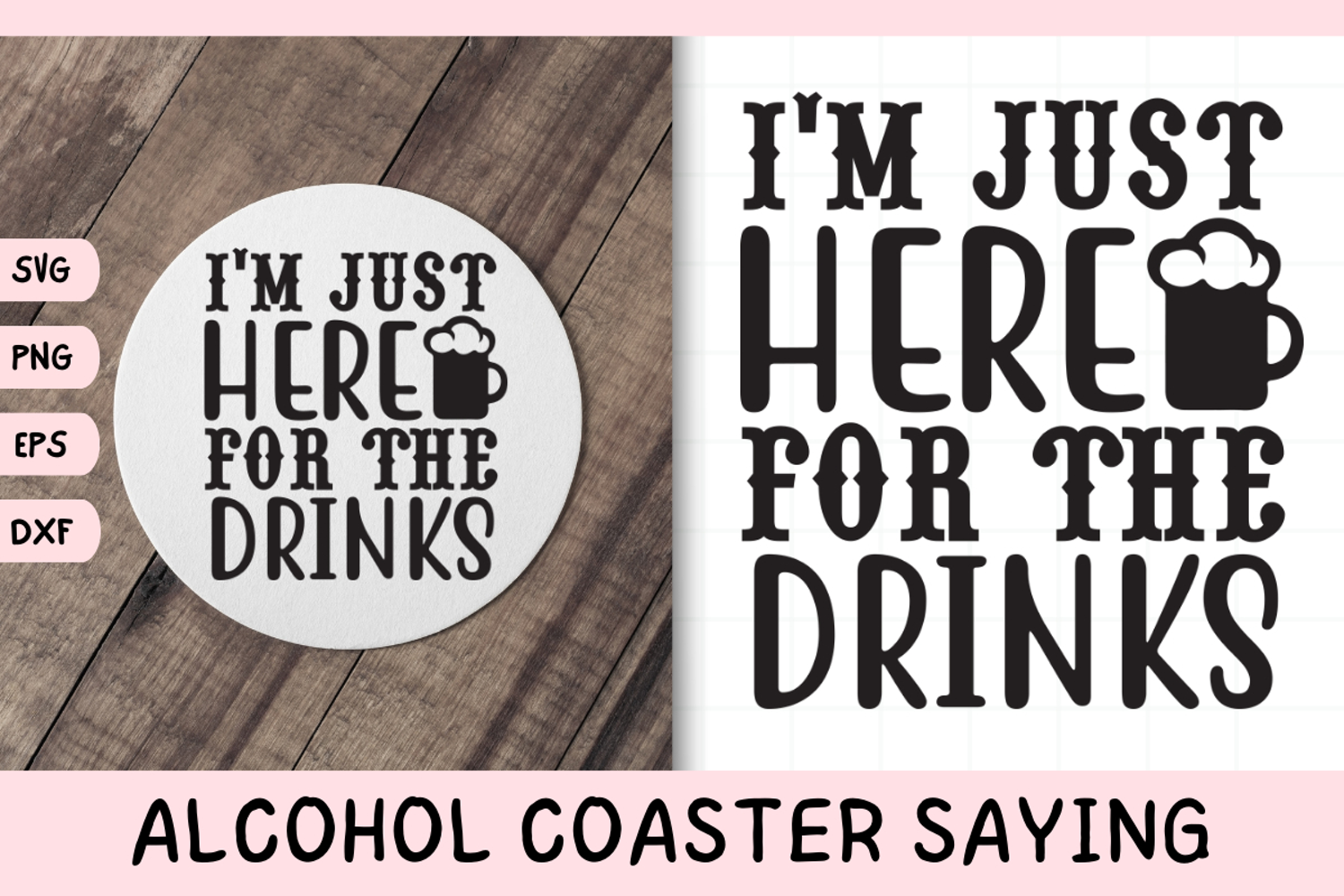 Funny Alcohol Coaster Quote SVG | Just Here For The Drinks