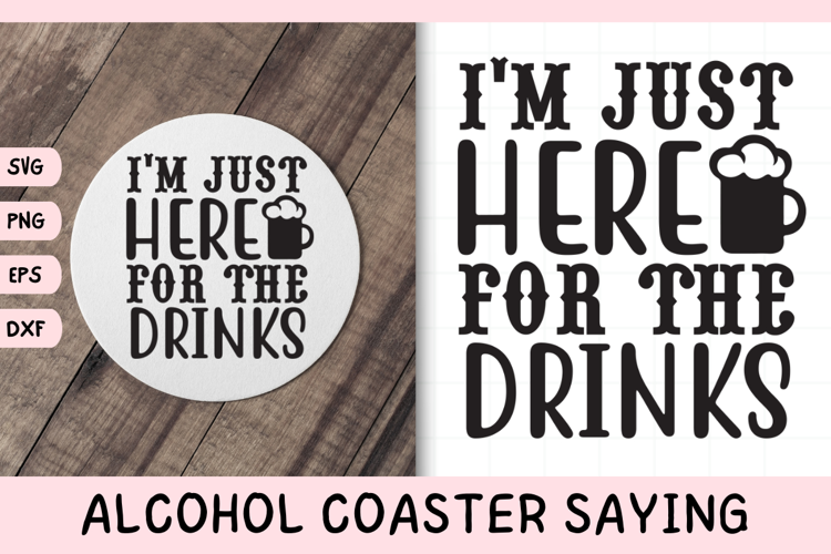 Funny Alcohol Coaster Quote SVG | Just Here For The Drinks example image 1