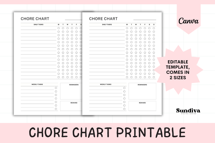 Easily edit the layout, colors, and fonts in Canva. Perfect for households, classrooms, or your own routines, this chart keeps tasks simple, structured, and rewarding.