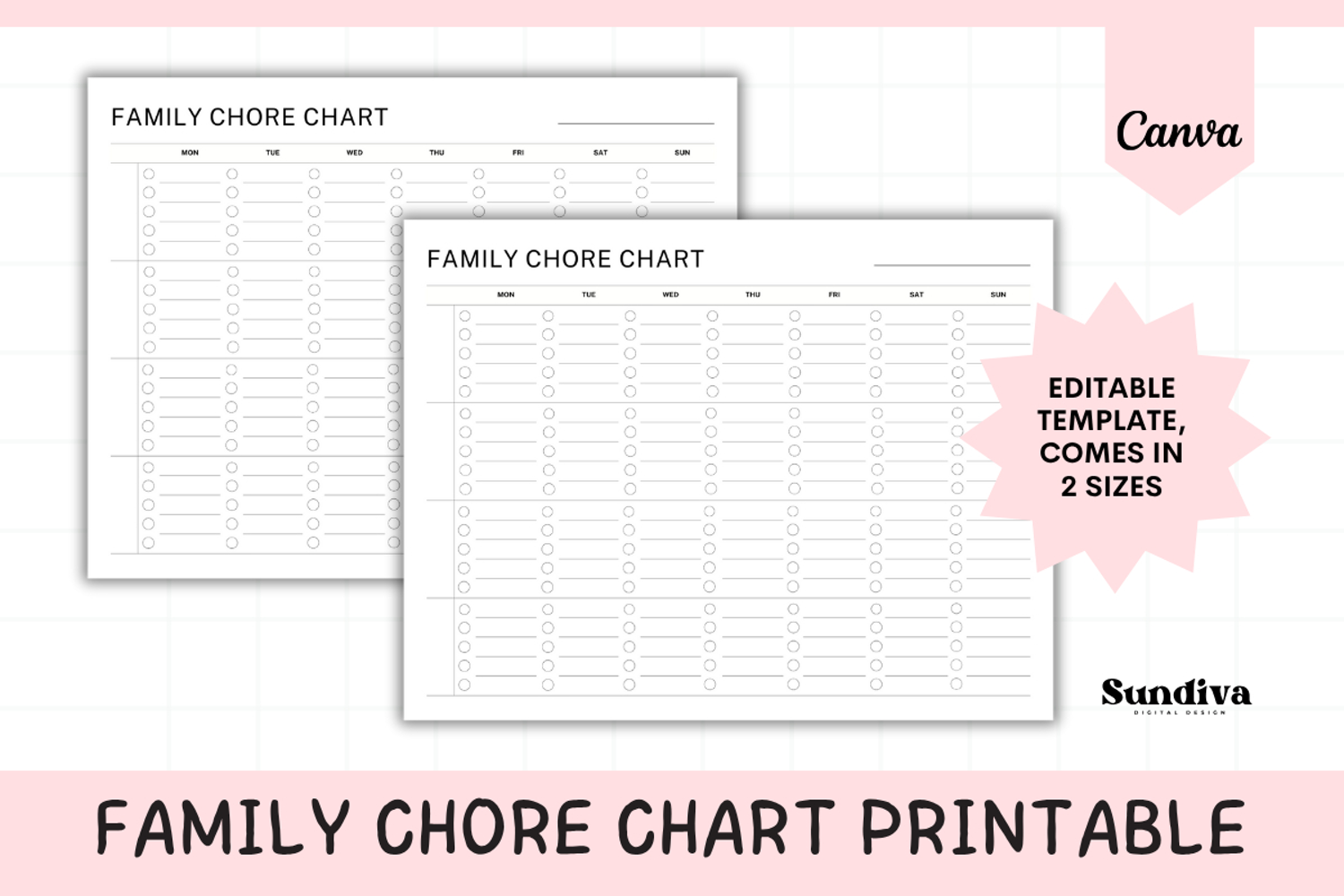 Keep your household running smoothly with this Editable Family Chore Chart Canva Template! Designed to help families stay organized, this chart makes it easy to manage daily and weekly chores for everyone in the home.