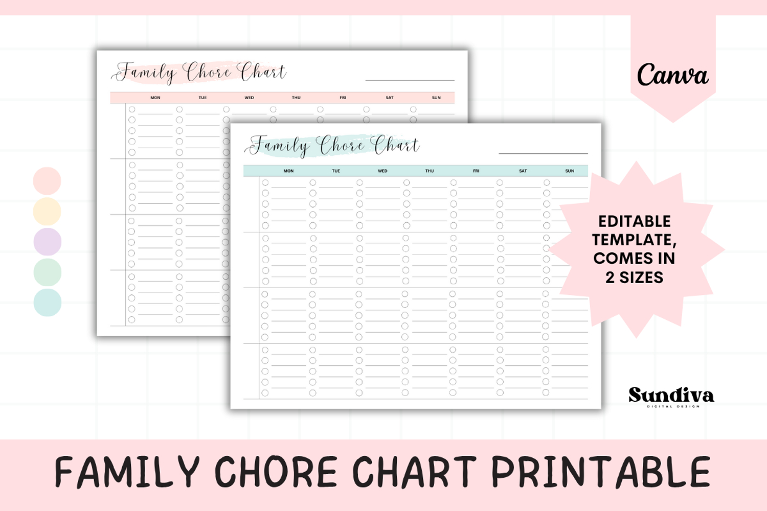 Keep your household running smoothly with this Editable Family Chore Chart Canva Template! Designed to help families stay organized, this chart makes it easy to manage daily and weekly chores for everyone in the home.