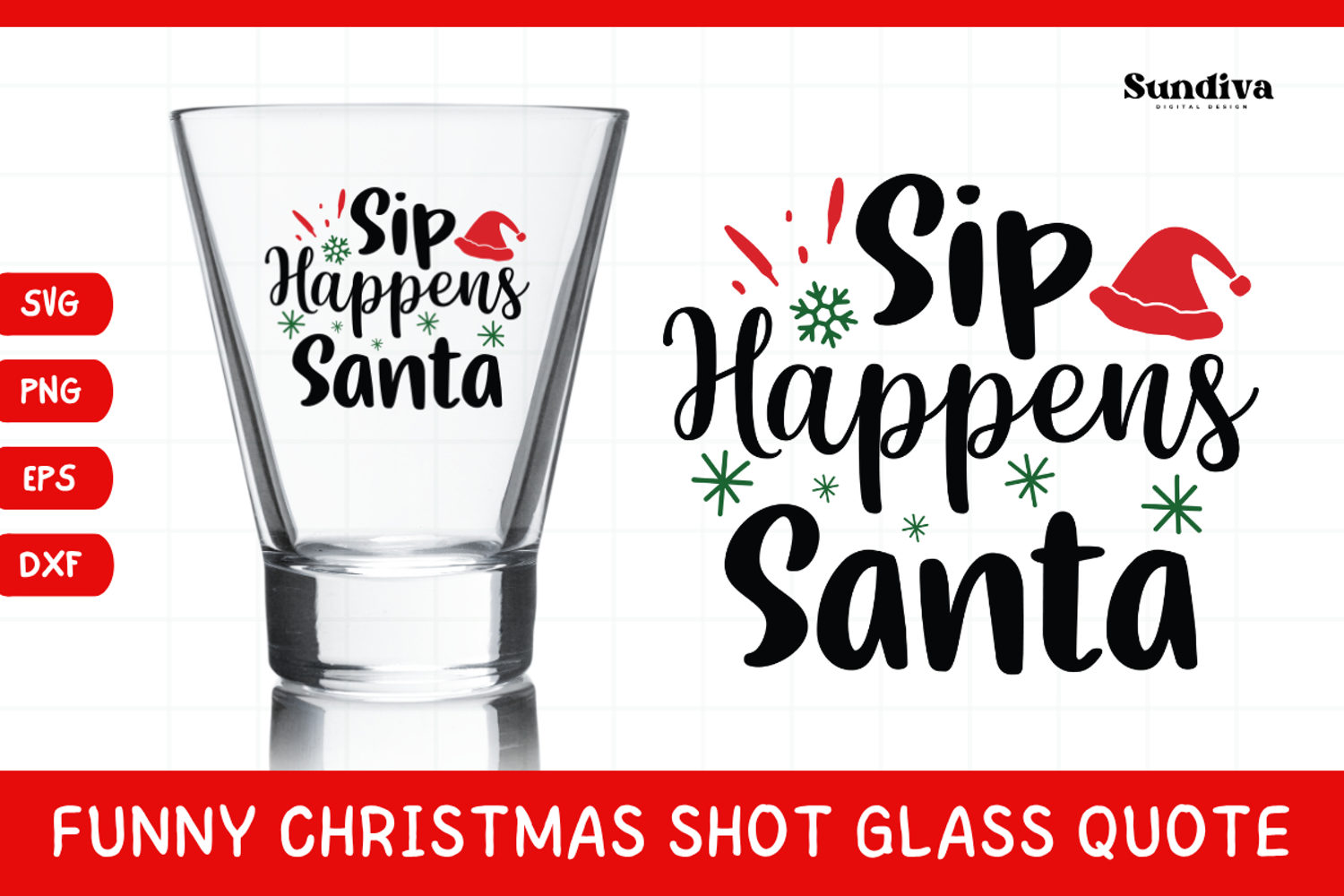 Funny Christmas Shot Glass Quote SVG | Sip Happens, Santa