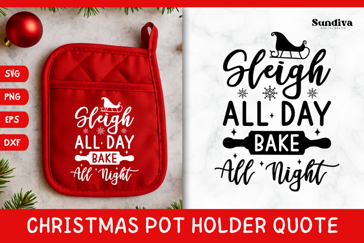 Christmas Pot Holder Quote SVG | Bake All Night example image 1