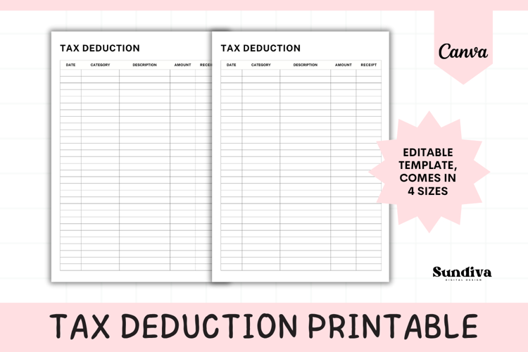 Similar Design Products to Editable Tax Deduction Tracker Sheet Template 1