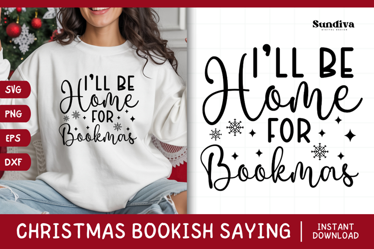 Christmas Bookish Quote SVG | I'll Be Home for Bookmas