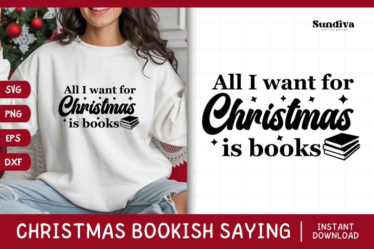 Similar Design Products to Christmas Bookish Quote SVG | All I Want for Christmas Books