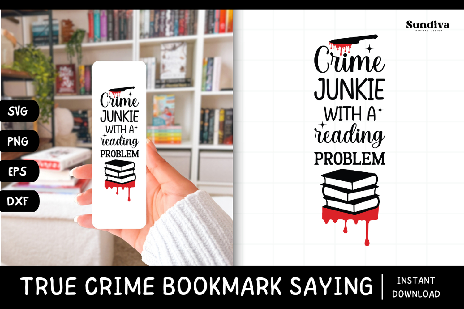 You’ll receive the design in SVG, PNG, DXF, and EPS formats, making it easy to use with Cricut, Silhouette, and most design software. Ideal for creating bookmarks, stickers, book accessories, or fun gifts for true crime lovers.