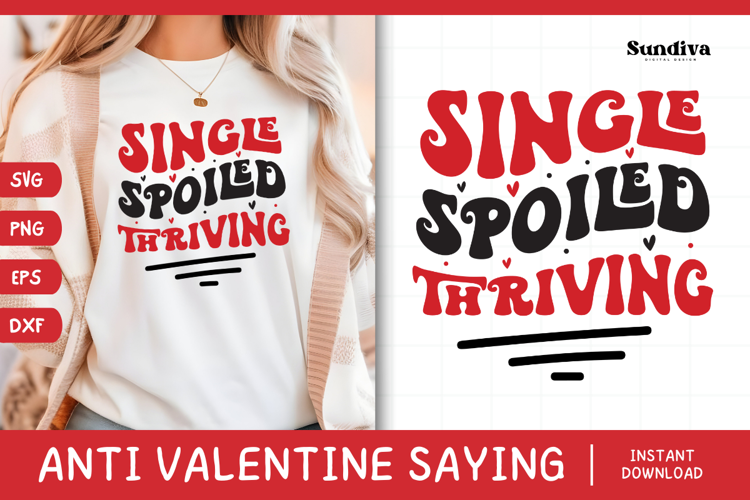 Anti Valentine's Day Quote SVG | Single. Spoiled. Thriving. example image 1
