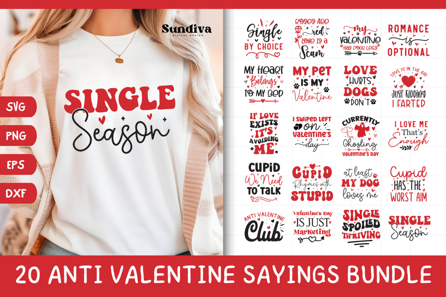 Celebrate Valentine’s Day your own way with this Anti Valentine Sayings Bundle, featuring 20 bold and funny designs for those who love sarcasm, humour, and non-traditional Valentine vibes.