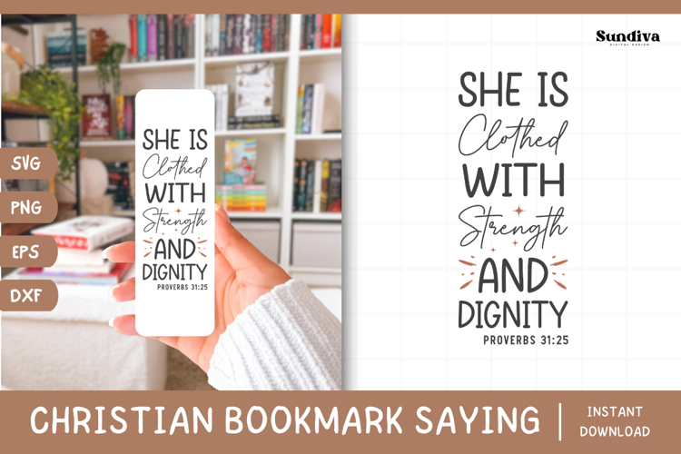 Similar Design Products to Christian Bookmark Saying SVG | She Is Clothed With Strength